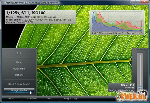 FastPictureViewer - простой в использовании просмотровщик графических файлов. Основным достоинством программы является очень быстрая работа с файлами большого размера, которое заключается в том, что используется не классические методы рендеринга изображений, а считывает их с помощью графического чипа видеокарты.