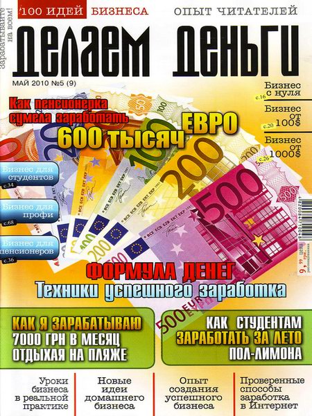 Издание содержит множество идей, с помощью которых можно заработать. В каждом номере конкурс идей, теория бизнеса, психология бизнеса и опыт профи и самих читателей.