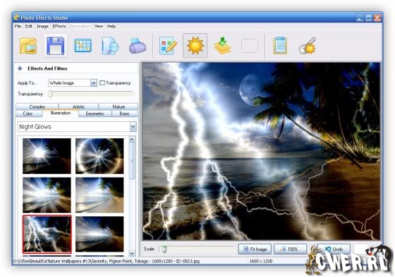 Photo Effects - это новая программа для обработки фотографий при помощи разнообразных фильтров. С её помощью можно полностью преобразить любое изображение. Программа позволяет использовать более 50-ти эффектов, включая как традиционные, так и оригинальные. Вы сможете увидеть свои фотографии на фоне дождя и снега, в тумане и под облаками, добавить солнечный свет или закружить в потоке тайфуна.