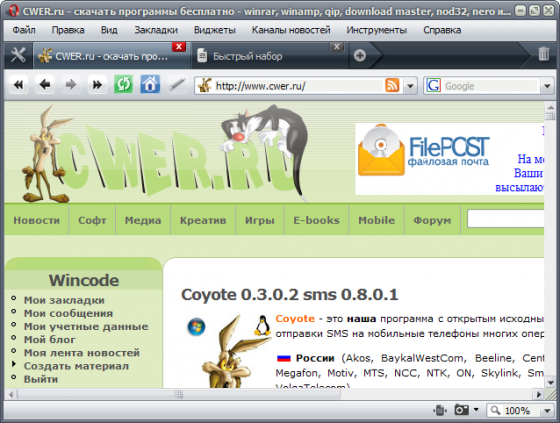 Вышла новая версия популярного браузера Opera. Это – один из самых быстрых и гибких в настройке браузеров. Используя скины, пользовательские панели и другие средства настройки интерфейса, его внешний вид можно изменять до неузнаваемости. Программа позволяет "на лету" отключать и включать графику, а также может похвастаться фирменной технологией масштабирования веб-страниц, благодаря которой пользователи браузера практически никогда не видят горизонтальной прокрутки.