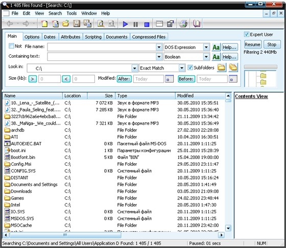 FileLocator Pro - очень мощное программное решение для поиска файлов на ПК. Возможность поиска файлов в ZIP, CAB, PDF, Word файлах, поик строкового содержания в файлах, поддержка Active Scripting для написания собственных скриптов для поиска, экспорт результатов поиска в Text, CSV, HTML, XML форматы, встроенный просмотрщик файлов, поддержка плагинов, масса опций и расширений для поиска.