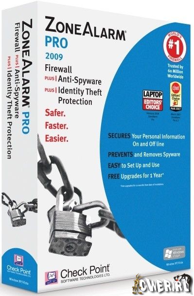 ZoneAlarm Pro - хорошо известный фаерволл, один из лучших в мире на сегодняшний день. Защищает компьютер от внешних угроз при работе в интернете и локальной сети. Блокирует атаку, не давая возможность получить доступ к компьютеру пользователя, имеет режим "стелс" невидимки в сети. Перекрывает выход в Интернет шпионским программам для пересылки личной информации. Защищает программы и операционную систему от вредоносного программного обеспечения и пр. Как необязательное дополнение в файерволл встроена антивирусная Anti-Spyware программы.
