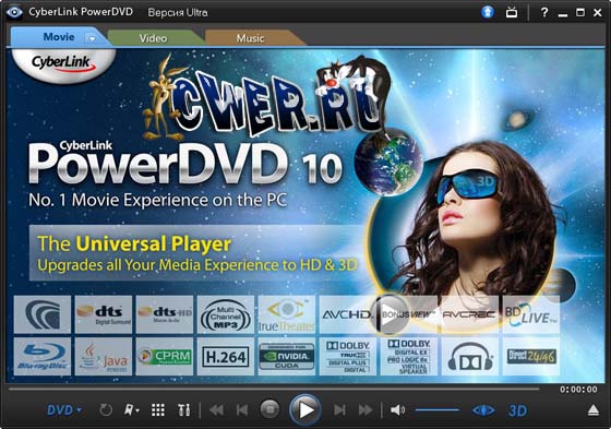 PowerDVD Ultra - самая функциональная версия одного из самых лучших современных программных проигрывателей, позволяющих осуществлять интерактивный просмотр дисков DVD-Video, Video CD и Blu-Ray на вашем компьютере. К основным достоинствам данного проигрывателя можно отнести высокое качество изображения, удобный интерфейс со скинами и хорошую настраиваемость. Кроме просмотра фильмов с компакт-дисков (DVD и Video CD), PowerDVD позволяет проигрывать файлы форматов, поддерживаемых Windows Media Player, а также MPEG1 и MPEG2. В программе также имеются функции захвата кадров в файл формата BMP, повтора участка записи, регулировки параметров отображения, запоминания момента остановки, поддержки колеса прокрутки мыши и многие другие возможности. С помощью функции Movie Collection вы можете создавать собственный каталог вашей коллекции фильмов, храня рецензии, личные примечания, информацию об обложке фильма, а также обмениваться этими данными с другими пользователями с помощью сервиса MoovieLive.