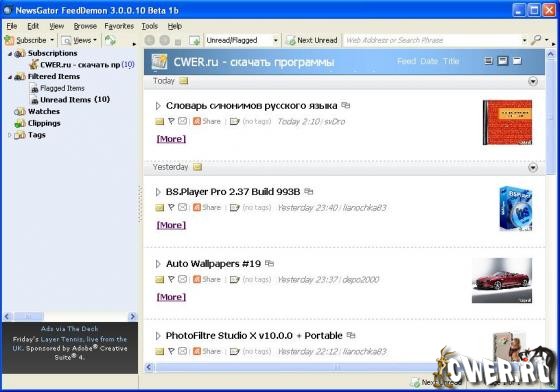 Новая версия одной из лучших и самых популярных программ для чтения RSS-новостей. FeedDemon, облегчающая поиск и чтение заголовков в формате RSS в сети без необходимости личного посещения сайтов с материалами.