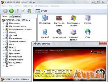 EVEREST - это программа для детальной диагностики и тестирования аппаратных средств компьютера, а также для проведения сетевого аудита и настройки компьютера на оптимальную работу. Предоставляет сведения обо всем аппаратном и программном обеспечении, осуществляет тесты различных модулей ПК, сохраняет отчеты в HTML и TXT форматах и т.д. Тестирование CPU, FPU и Memory BenchMark позволяет найти наиболее эффективное решение для работы системы, а также — сравнить текущее состояние системы с предыдущими вариантами или с другими системами. Выгодное отличие программы EVEREST Ultimate Edition от других аналогичных продуктов — предоставление полной информации относительно установленного программного обеспечения, оперативной системы и степени безопасности и полная диагностика системы, способная собрать более 100 страниц информации о системе.