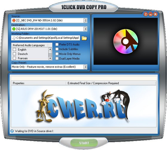 1Click DVD Copy - простой и быстрый инструмент для копирования видео DVD.Подойдёт как начинающим пользователям, (так как очень прост), так и продвинутым...