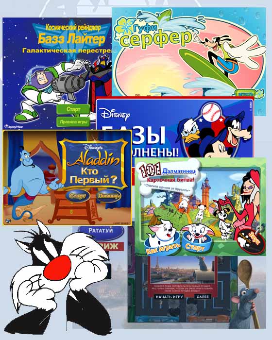 Сборник flash-игр от студии Disney. В играх представлены все персонажи мультфильмов Disney: Микки Маус, Гуффи, Аладдин и др.