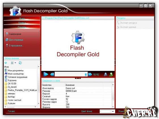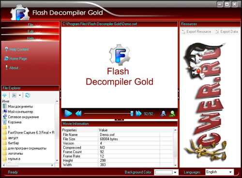 Flash Decompiler Gold - мощная программа для извлечения ресурсов из флэш файлов.