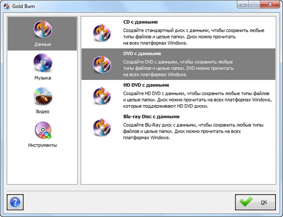 Программы для прожига кажутся вам слишком сложными? Попробуйте Gold Burn. С данной программой вы получите мощность, простоту использования и возможность резервного копирования. Прожигайте диски и обновляйте информацию о них. Записывайте данные на диск и обновляйте ранее записанные диски, добавляя или убирая файлы и папки.