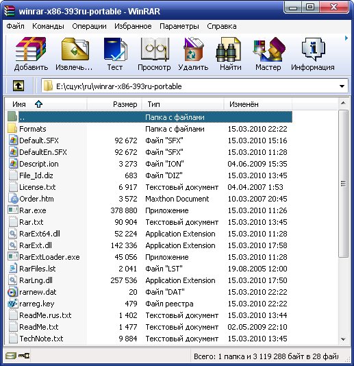 WinRAR - один из самых известных архиваторов. То, что он поддерживает архивацию в формате RAR, это, вероятно, объяснять не надо. Кроме того, программа умеет работать с архивами ZIP, CAB, ARJ, LZH, TAR, GZ, ACE 2.0, BZIP, JAR, UUE, GZIP, BZIP2 и 7-Zip, при этом она обладает многочисленными очень полезными возможностями - шифрование, поддержка непрерывных (solid) архивов, в которых степень сжатия может быть на 10 – 50% больше, чем при обычных методах сжатия, специальный алгоритм для сжатия мультимедийных файлов, поддержка многотомных архивов и многим другим.