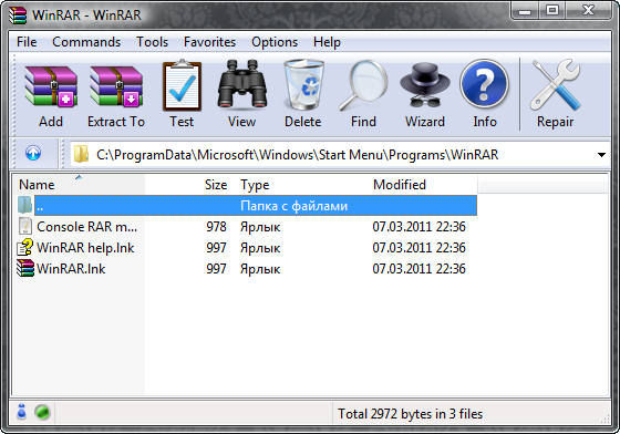 WinRAR - один из самых известных архиваторов. То, что он поддерживает архивацию в формате RAR, это, вероятно, обьяснять не надо. Кроме того, программа умеет работать с архивами ZIP, CAB, ARJ, LZH, TAR, GZ, ACE 2.0, BZIP, JAR, UUE, GZIP, BZIP2 и 7-Zip, при этом она обладает многочисленными очень полезными возможностями - шифрование, поддержка непрерывных (solid) архивов, в которых степень сжатия может быть на 10 – 50% больше, чем при обычных методах сжатия, специальный алгоритм для сжатия мультимедийных файлов, поддержка многотомных архивов и многим другим.