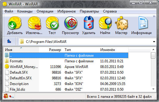 WinRAR - один из самых известных архиваторов. То, что он поддерживает архивацию в формате RAR, это, вероятно, объяснять не надо. Кроме того, программа умеет работать с архивами ZIP, CAB, ARJ, LZH, TAR, GZ, ACE 2.0, BZIP, JAR, UUE, GZIP, BZIP2 и 7-Zip, при этом она обладает многочисленными очень полезными возможностями - шифрование, поддержка непрерывных (solid) архивов, в которых степень сжатия может быть на 10 – 50% больше, чем при обычных методах сжатия, специальный алгоритм для сжатия мультимедийных файлов, поддержка многотомных архивов и многим другим.