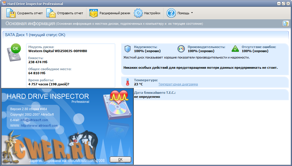 Hard Drive Inspector - программа для контроля за состоянием жестких дисков. Использует для своей работы данные S.M.A.R.T., что позволяет предсказать степень вероятности сбоя в работе HDD до того, как он в действительности произойдет. Имеется гибкая система настроек, позволяющая настроить Hard Drive Inspector под свои нужды.