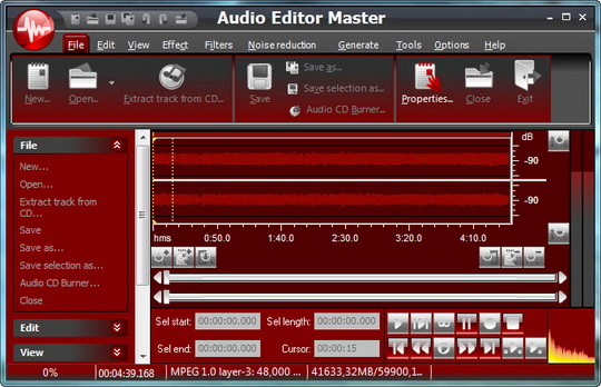 Audio Editor Master - визуальный многофункциональный аудио редактор. Программа позволяет выполнять множество различных операций с аудио данными. Вы можете конвертировать аудио форматы во всех популярные форматы, а также записывать аудио компакт-диски с музыкальными файлами. И Вы можете также использовать его для извлечения и преобразования звуковых файлов с CD, конвертировать текст в речь, редактировать аудио файл информации и многое другое.