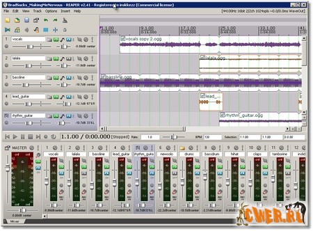 REAPER - компактный аудиоредактор для создания, редактирования и записи многоканальных аудиотреков с возможностью обработки каждого трека по отдельности. REAPER позволяет применять во время обработки аудио множество эффектов, поддерживает технологии ASIO, Kernel Streaming, WaveOut и DirectSound воспроизведение и запись. Поддерживает работу с файлами в форматах WAV, OGG, MP3, MIDI (чтение) и WAV, MIDI (запись), управление уровнем громкости, изменение границ трека, допускает многоуровневый откат/повтор выполненных операций и многое другое.