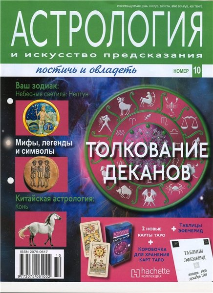 Коллекция «Астрология и искусство предсказания» предоставляет уникальную возможность познакомиться с разнообразными методами гадания и предсказания, существующими уже не одно тысячелетие. Из выпуска в выпуск Вы сможете ознакомиться со всеми тонкостями астрологии и научиться строить предсказания себе и своим окружающим. Постепенно Вы будете лучше понимать самого себя, своих близких и станете хозяином своей судьбы!