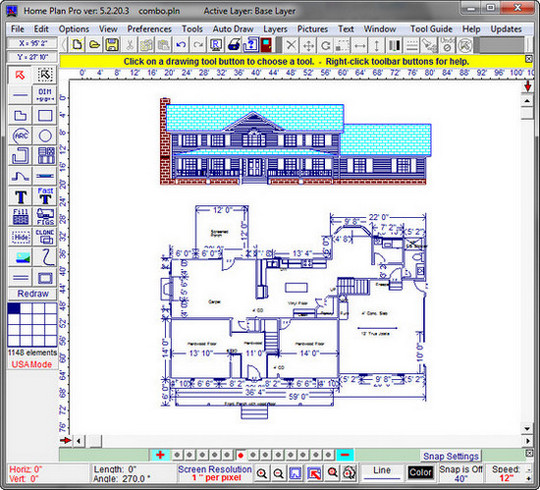 Home Plan Pro - отличная программа для быстрого и легкого черчения плана помещений, мест и архитектурного дизайна. Программа предлагает множество различных инструментов, которые помогут вам начертить план вашего дома, квартиры, жилых помещений и т.д. Пользователю предлагаются такие инструменты, как линии, овалы, прямоугольники, черчение стен, дверей, окон, арок, кирпичных стен, вставка изображений, текста, дублирование предыдущего элемента и многое другое.