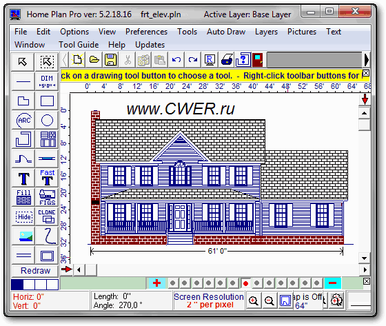 Home Plan Pro - отличная программа для быстрого и легкого черчения плана помещений, мест и архитектурного дизайна. Программа предлагает множество различных инструментов, которые помогут вам начертить план вашего дома, квартиры, жилых помещений и т.д. Пользователю предлагаются такие инструменты, как линии, овалы, прямоугольники, черчение стен, дверей, окон, арок, кирпичных стен, вставка изображений, текста, дублирование предыдущего элемента и многое другое.