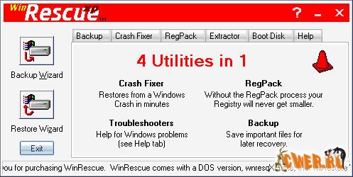 Обновилась программа WinRescue XP. WinRescue XP это четыре утилиты в одном - Crash Fixer, RegPack, File Backup и Troubleshooter которые помогают решить различные проблемы в работе MS Windows. Crash Fixer восстанавливает систему после краха за 2 минуты; RegPack очищает системные реестр от всякого мусора; FileBackup создает резервные копии важных файлов; Troubleshooter помогает при решении проблем с системной памятью, подключением к Интернету, конфликтах устройств и т.п.