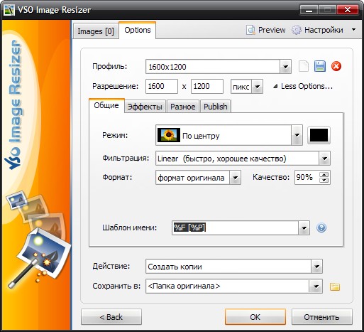 VSO Image Resizer - программа для изменения размеров цифровых картинок и изображений в различных графических форматах (на данный момент поддерживается работа с файлами JPEG, GIF, BMP, TIFF, CR2, NEF и т.д.). Также в утилите имеются возможности для компрессии файлов, конвертирования из одного формата в другой, экспорта, наложения прозрачных прозрачных и управления картинками. VSO Image Resizer интегрируется в оболочку Windows, может работать в пакетном режиме, обладает расширенными опциями настройки для продвинутых пользователей.