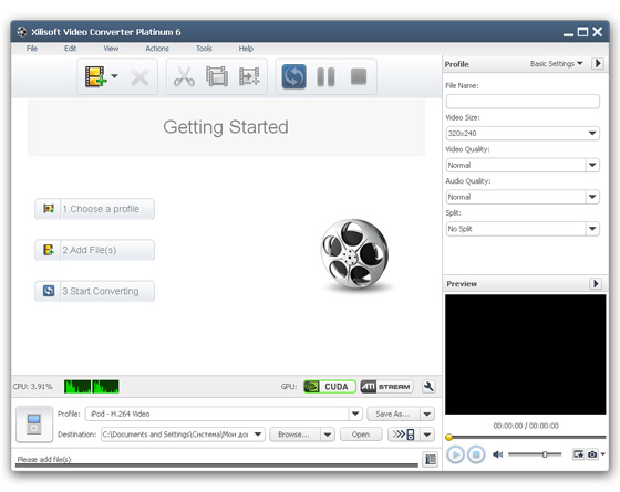 Xilisoft HD Video Converter - мощный, универсальный видео конвертер, с улучшенной HD (High-Definition) технологией конвертирования видео. Программа можно легко выполнять конвертирование между форматами HD видео, конвертировать видео в HD, преобразование HD видео на SD (стандартной четкости) видео. HD Video Converter поддерживает большинство HD видео форматов, таких как AVCHD (МТС, m2ts), H.264/AVC, MKV, MPEG-2 (TS), DivX, WMV HD, MPEG-4 и Quick Time. А теперь программа поддерживает и технологию NVIDIA® CUDA™.