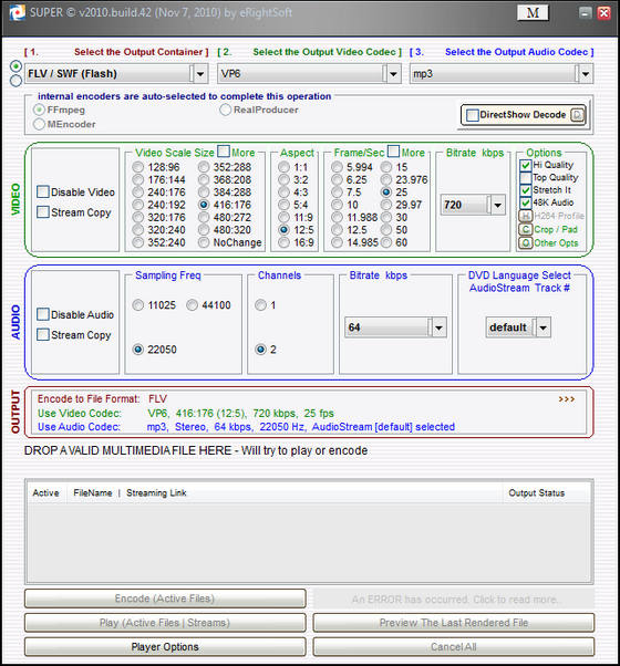 SUPER 2010 © - простая и очень эффективная бесплатная программа для конвертирования (и проигрывания) любых файлов мультимедиа без каких-либо временных или функциональных ограничений. SUPER © не требует установки никаких дополнительных модулей - все нужные кодеки уже встроены в программу.