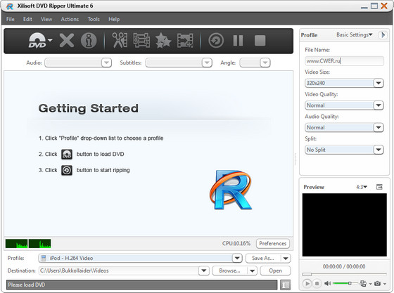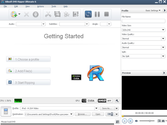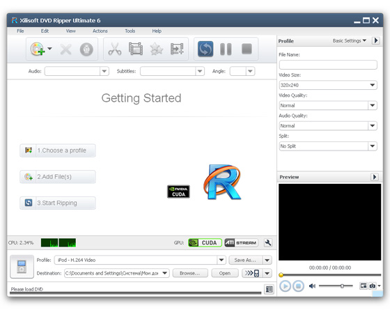 Xilisoft DVD Ripper Ultimate - мощная и удобная в использовании программа для копирования DVD-дисков с возможность конвертирования содержимого в соответствующие аудио и видео файлы типа AVI, MPEG, WMV, DivX, MP4, H.264, RM, MOV, M4V, XviD, 3GP, MP3, WMA, WAV, RA, M4A, AAC, AC3, OGG и т.д. Утилита способна создавать файлы, совместимые с iPod, iPhone, PSP, Apple TV и прочими портативными устройствами. Имеются опции конвертирования сегментов клипа, изменения размеров, наложения эффектов, добавления логотипов, предпросмотра результатов. Присутствует пакетная обработка файлов, получение информации из Интернет-баз и многие другие возможности.