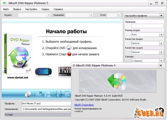 Xilisoft DVD Ripper Platinum - программа для создания резервных копий DVD-дисков. Xilisoft DVD Ripper Platinum поддерживает риппинг во все самые популярные форматы, среди которых VI, MPEG, WMV, DivX, 3GP, MOV, MP4, MP3, WAV, AAC, M4A. Программа позволяет выбрать язык субтитров, разбить файл на куски указанного размера, задействовать звук Dolby Surround, выбрать битрейт аудио. Кроме этого, программа анализирует тип процессора и в зависимости от этого выбирает наилучшую скорость риппинга. Xilisoft DVD Ripper Platinum полностью задействует возможности последних процессоров и позволяет выполнять пакетное преобразование файлов.