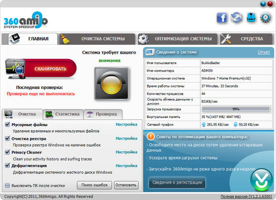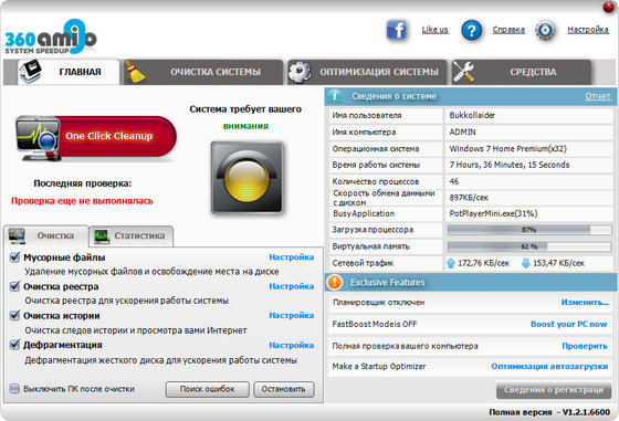 360Amigo System Speedup - инструмент, который поможет вам оптимизировать работу компьютера и исправить ошибки в его работе. В программу 360Amigo System Speedup входят инструменты для очистки системы, оптимизации системы и целый набор инструментов, созданных специально для улучшения работы компьютера.