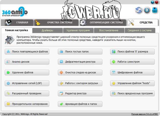 360Amigo System Speedup - инструмент, который поможет вам оптимизировать работу компьютера и исправить ошибки в его работе. В программу 360Amigo System Speedup входят инструменты для очистки системы, оптимизации системы и целый набор инструментов, созданных специально для улучшения работы компьютера.