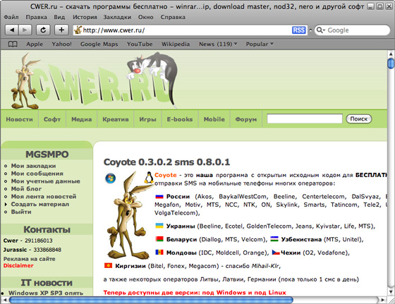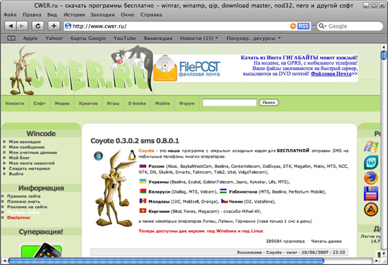 Самый скоростной браузер в мире от корпорации Apple. Разработчики довольно агрессивно заявляют о том, что Safari загружает страницы в 2 раза быстрее Internet Explorer 7, на 60% быстрее Firefox и почти в 3 раза быстрее чем Opera!