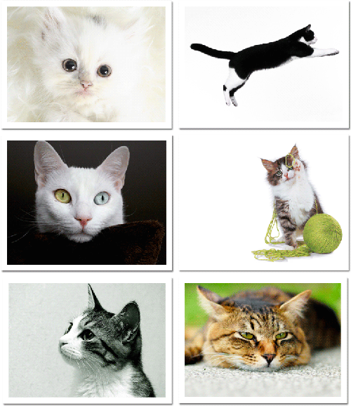 В мини-энциклопедии «Кошки» представлены иллюстрации и описания 70 пород кошек. В книге дана информация о породах кошек, о типах шерсти, анатомии, внешнем виде и размножении этих домашних питомцев.