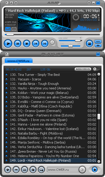 AIMP - это многофункциональный аудио центр. Благодаря встроенным утилитам, вы легко сможете перекодировать музыку из одного формата в другой, записать звук с микрофона или другого звукового устройства, отредактировать тэги музыкальных файлов, а так же группой переименовать или отсортировать их. AIMP2 базируется на известном аудио движке BASS - вы с легкостью можете подключить плагины от этой библиотеки к AIMP.AIMP - это отличный аудио плеер с поддержкой: скинов, многих музыкальных форматов и плюс, имеющий встроенные утилиты для работы со звуком. AIMP победил в «Софт года 2007» в номинациях «Интерфейс» и «Функциональность».