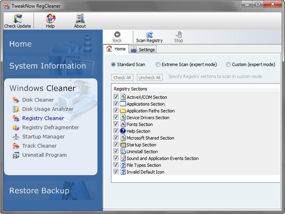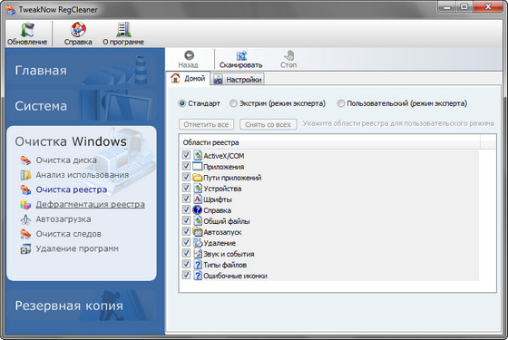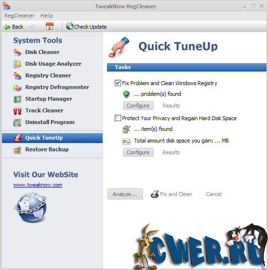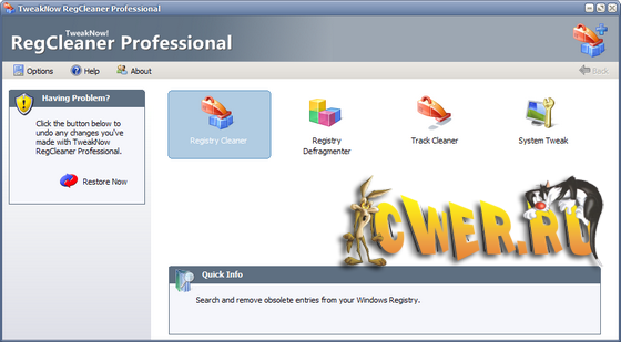 TweakNow RegCleaner помогает очистить реестр от ненужных записей. Все приложения, с которыми вы работаете, при деинсталляции должны убирать все сделанные ими записи в системном реестре. Однако очень многие программы этого не делают. Из-за этого реестр переполняется ненужными записями и разрастается в размерах, что, в свою очередь, приводит к замедлению работы системы. TweakNow RegCleaner быстро сканирует реестр, находит неиспользуемые значения и удаляет их. При этом программа создает файл отката, который поможет восстановить исходные значения в случае, если работа программы вас не устроит.