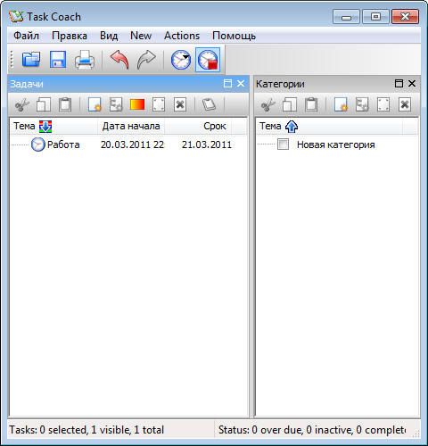 Task Coach - это программа-органайзер для записи текущих дел на самые разнообразные темы. Возможно построение древовидной структуры дел, отображение списком и многое другое. Очень проста в использовании, имеет русский интерфейс. Программа появилась в результате неудовлетворенности доступными ныне менеджерами задач, например Outlook или Lotus Notes, которые не обладают инструментами для создания сложных задач. Часто задачи или важные дела состоят из нескольких действий. Task Coach способен составлять сложные задачи.