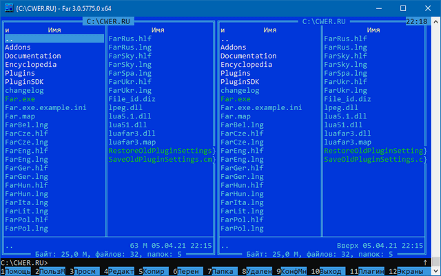 Far Manager — консольный файловый менеджер для операционных систем семейства Windows. Программа предоставляет удобный интерфейс пользователя для работы с файловыми системами (реальными и эмулированными) и файлами.
