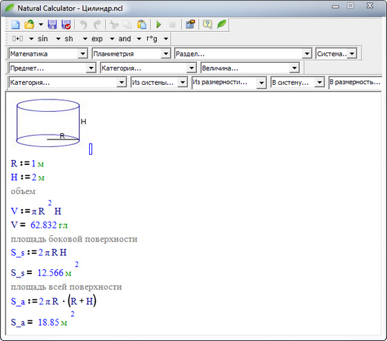 Geometry Calculator - простой бесплатный решатель основных геометрических фигур (круг, площадь, площадь поверхности и объем). Несмотря на недоработки интерфейса, программа оказалась весьма полезна при строительных работах.