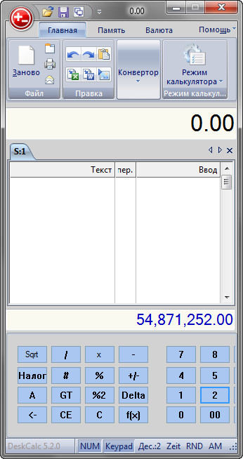 DeskCalc - продвинутый калькулятор, который можно использовать в качестве замены стандартному. Программа позволяет работать с процентами, налогами, валютой, есть редактор формул, вычисления с плавающей запятой, экспорт результатов в Excel, встроенный переводчик формул, функции памяти и многое другое...