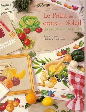 Книга по вышивке крестиком со схемами фруктов и овощей в палитре мулине ДМС, которые подойдут для украшения скатертей, полотенец, салфеток и других кухонных принадлежностей.
