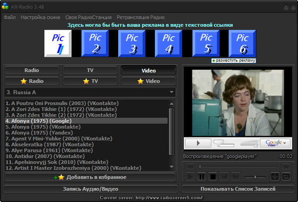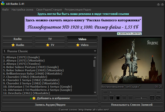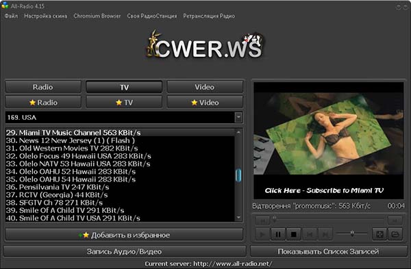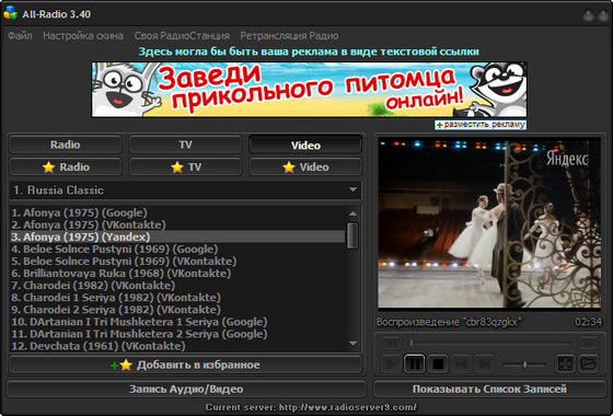 All-Radio - это многофункциональная программа для прослушивания радио через интернет, а также просмотра ТВ и видео. All-Radio распространяется совершенно бесплатно (в программу встроен рекламный баннер, потому за ее использование платит не пользователь, а рекламодатель).