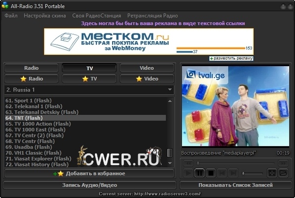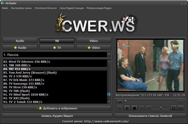 Программа для прослушивания радиостанций и просмотра ТВ-каналов, вещающих через интернет с возможностью записи аудио и видео потока. После установки All-Radio у вас появится доступ к 2500 радиостанциям и 1200 телевизионным каналам со всех уголков планеты (более 100 стран). В программе собраны практически все РАДИО и ТВ станции, вещающие на русском языке. Положительным моментов является то, что вам не надо обновлять программу в целях пополнения списка станций. При запуске последние списки автоматически загружаются с сервера разработчиков.