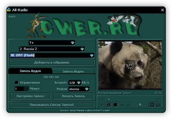Программа для прослушивания радиостанций и просмотра ТВ-каналов, вещающих через интернет с возможностью записи аудио и видео потока. После установки All-Radio у вас появится доступ к 2500 радиостанциям и 1200 телевизионным каналам со всех уголков планеты (более 100 стран). В программе собраны практически все РАДИО и ТВ станции, вещающие на русском языке. Положительным моментов является то, что вам не надо обновлять программу в целях пополнения списка станций. При запуске последние списки автоматически загружаются с сервера разработчиков.