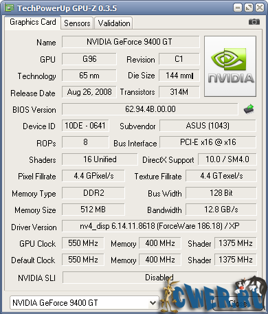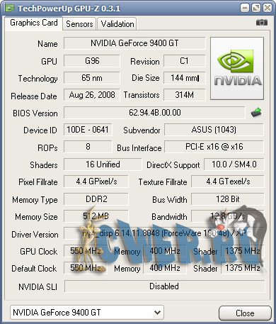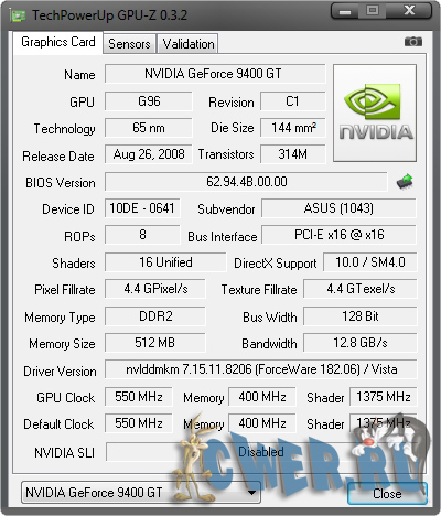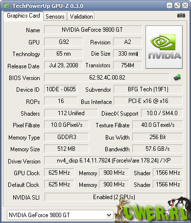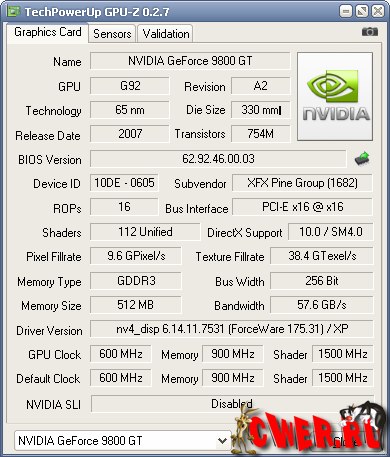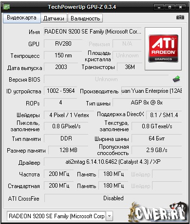 Вышла новая версия программы для вывода информации о графическом адаптере. GPU-Z поддерживает и карты NVIDIA, и ATI. Она поможет определить, какая у вас модель видеокарты, узнать интерфейс подключения, расскажет о том, какой используется графический процессор (версия BIOS, номер ревизии чипа, частота в 2D, 3D-режимах и при разгоне, сведения о поддержке DirectX).