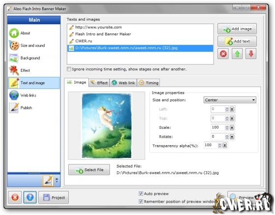 Простой и чрезвычайно удобный пользовательский интерфейс программы в стиле мастера, поможет вам создать различные по красоте и креативности баннеры всего несколькими щелчками мыши без какого либо знания основ Flash и его Actionscriptов.