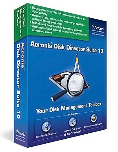 Acronis Disk Director Suite 10 — комплексный программный пакет для управления разделами и обслуживания жестких дисков, который включает в себя менеджер разделов, менеджер загрузки и инструментарий для редактирования записей на жёстком диске.