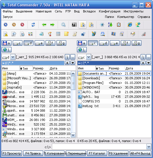 Total Commander - популярный файловый менеджер с практически всеми необходимыми для таких программ функциями. Кроме всех функциональностей, характерных для файловых менеджеров, в Total Commander встроены очень удобные просмотрщики для мультимедиа и графических файлов, распаковщики ZIP, ARJ, LZH, RAR, UC2, TAR, GZ, CAB, ACE и дополнительные dll для других архивных файлов; встроенный ftp-клиент - вообще просто прелесть: можно скачивать/закачивать файлы в несколько потоков, есть докачка, поддержка www-прокси при работе с ftp и есть даже такая функция, как подключение-скачивание-отключение в заданное время к заданному ftp. Не будут лишними и такие функции, как UUE/MIME/XXE кодирование/декодирование и разрезка/склейка длинных файлов, а также множество других функций, крайне необходимых для работы с файлами.
