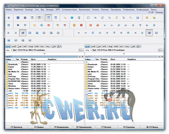 Total Commander - популярный файловый менеджер с практически всеми необходимыми для таких программ функциями. Кроме всех функциональностей, характерных для файловых менеджеров, в Total Commander встроены очень удобные просмотрщики для мультимедиа и графических файлов, распаковщики ZIP, ARJ, LZH, RAR, UC2, TAR, GZ, CAB, ACE и дополнительные dll для других архивных файлов; встроенный ftp-клиент - вообще просто прелесть: можно скачивать/закачивать файлы в несколько потоков, есть докачка, поддержка www-прокси при работе с ftp и есть даже такая функция, как подключение-скачивание-отключение в заданное время к заданному ftp. Не будут лишними и такие функции, как UUE/MIME/XXE кодирование/декодирование и разрезка/склейка длинных файлов, а также множество других функций, крайне необходимых для работы с файлами.