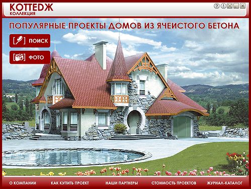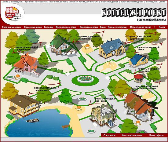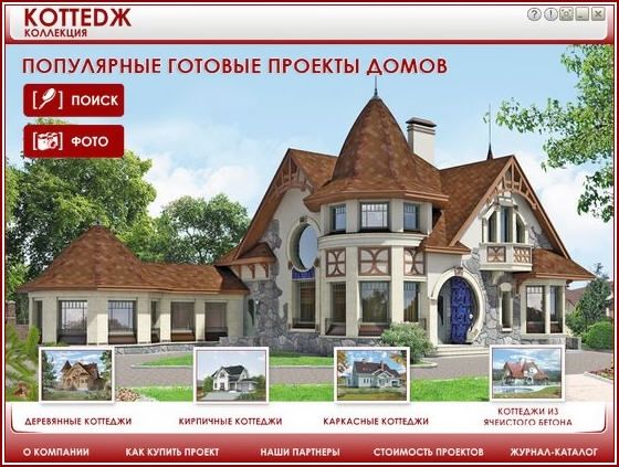 Банк проектов коттеджей и домов презентует всеукраинский журнал "Коттедж-проект". В каталоге представлены кирпичные, каменные, деревянные, каркасные дома, бизнес-коттеджи, беседки и бани. Каждый проект сопровождается увеличенным изображением, поэтажными планами, техническими спецификациями и сметой расходов. Кроме этого в каталоге вы найдете ряд статей с полезной для застройщика информацией.