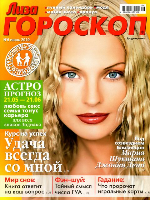 Глянцевый журнал для женщин, которые сверяют свою жизнь со звездами и любят получать положительные эмоции. Как стать хозяйкой своей судьбы? Звезды Вам советуют. Ежемесячные прогнозы для всех знаков Зодиака. Любовь: ее психология и выбор партнера. Погода на завтра. Исцели себя сама. Великие маги и пророки.