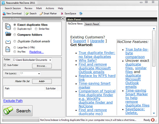 Reasonable NoClone - программа для поиска и удаления дубликатов файлов на отдельном компьютере или в локальной сети. Поиск одинаковых файлов ведется по большому числу критериев – имени, версии, размеру и пр. Отобранные программой файлы анализируются, побайтово сравнивая их код. NoClone может проводить поиск повторяющихся файлов любого формата, от библиотек dll до mp3. Если процедура поиска занимает много времени, ее можно продолжить в следующий раз, сохранив результаты текущей сессии в формате CSV.